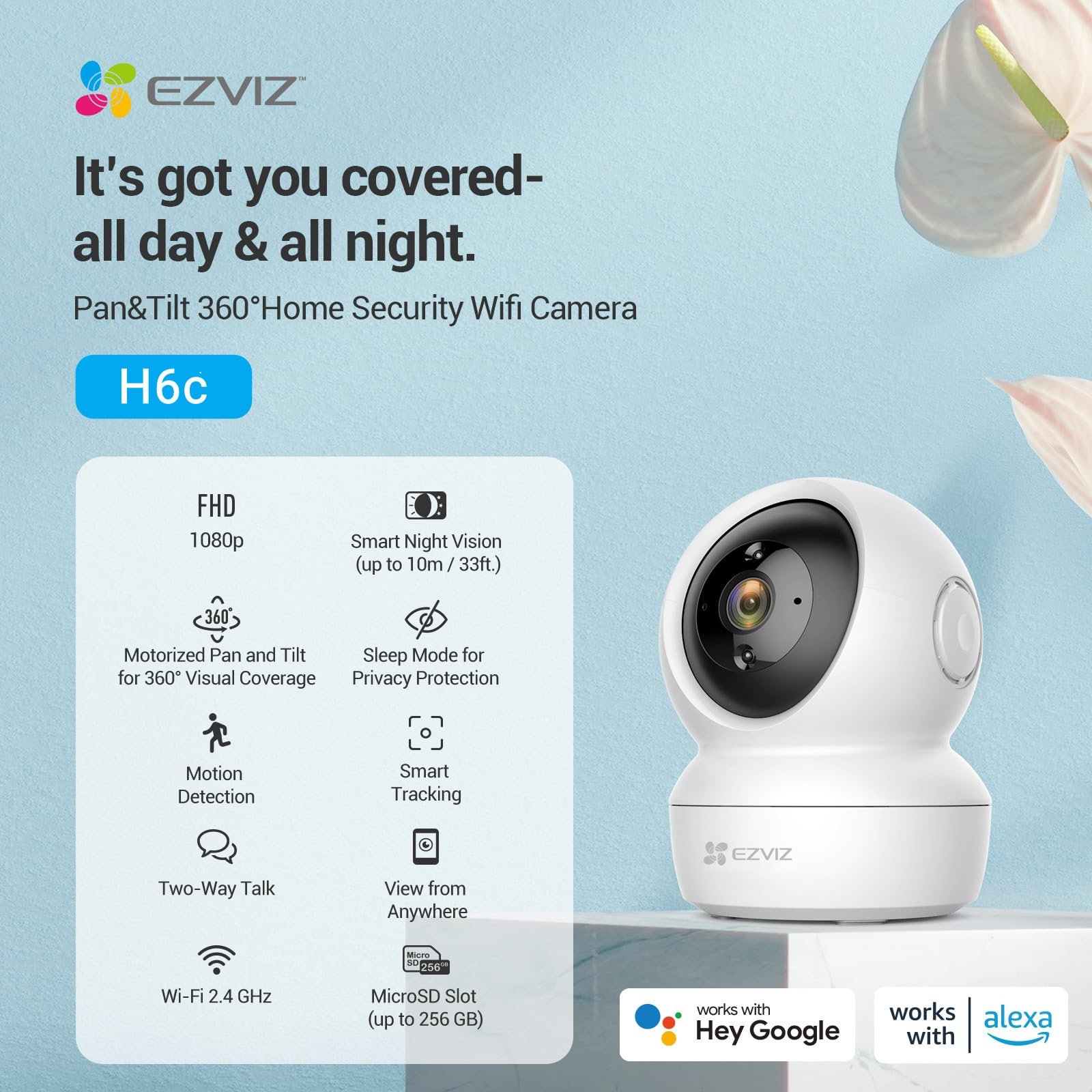 ✅ 1× EZVIZ H6c 360° Smart Home Security Camera